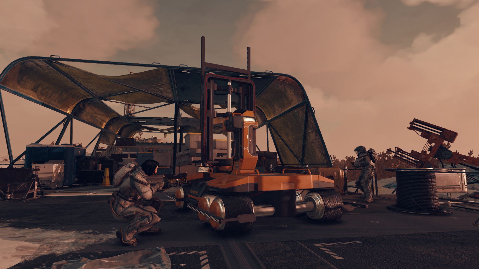Die Erkundung von Planeten bedeutet in der Regel auch, jedes Stück Beute einzusammeln, das Du finden kannst. Daher wird die Investition in einige weniger fokussierte Fertigkeiten Deine Reise leichter machen. Fertigkeiten wie Fitness, die Dir mehr Sauerstoff für die Erkundung gewähren, Gewichtheben, das Dein Tragegewicht erhöht, und Umweltkonditionierung, die Dich widerstandsfähiger gegen extreme Biome macht, werden sich als nützlich erweisen, wenn Du Dich auf den Planeten begeben willst. Oh, und wenn Du wirklich einen Außenposten bauen willst, kannst Du mit der Fertigkeit Außenpostenbau komplexere Gegenstände herstellen. Viel Spaß in der Galaxie!