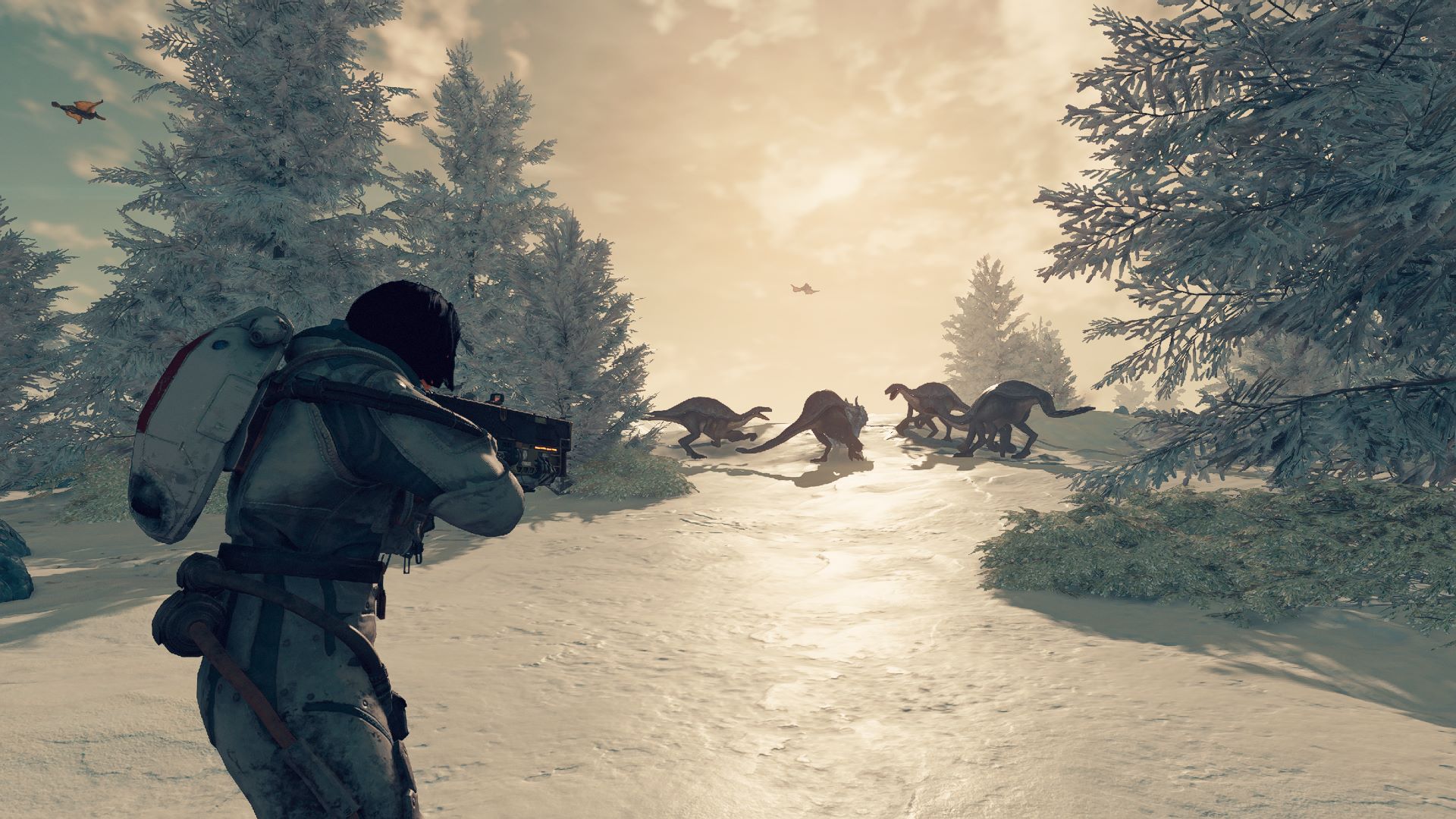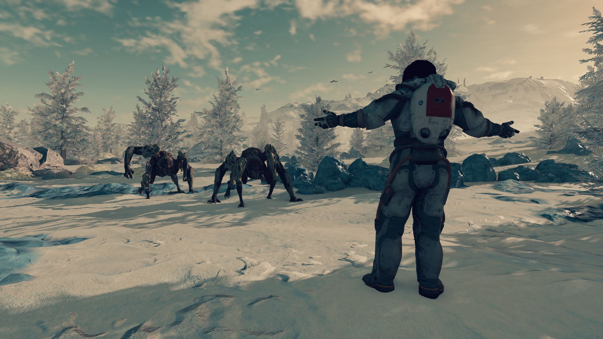 Auch wenn Du festen Boden unter den Füßen hast, könnten Dich einige Gefahren erwarten. Jeder Planet, den Du besuchst, hat sein eigenes Ökosystem, und du musst auf verschiedene Bedingungen vorbereitet sein, wenn Du ihn in vollem Umfang erkunden willst. Planeten können eine aggressive Fauna, extreme Klimabedingungen oder biologische Gefahren aufweisen, die dazu führen können, dass Du Dir unterwegs die eine oder andere Krankheit einfängst. Dabei geht es nicht nur um den Schaden am Lebensbalken, sondern auch um giftige Gase, die die Lunge schädigen und den O2-Gehalt verringern können, so dass Du beispielsweise nicht mehr so lange sprinten kannst.
