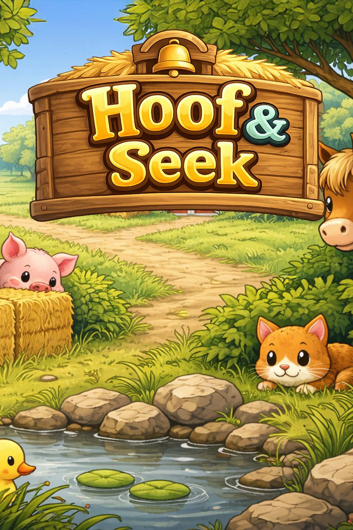 Hoof & Seek ist ein entspanntes Wimmelbildspiel, das auf einem charmanten Bauernhof spielt. Jedes Level findet auf einem einzigen Bildschirm statt, der mit Scheunen, Bäumen, Zäunen und anderen Bauernhofkulissen gefüllt ist. Irgendwo in jeder Szene sind Bauernhoftiere sorgfältig versteckt. Ihr Ziel ist es, die Umgebung zu beobachten, jeden Winkel zu durchsuchen und sie alle zu finden.