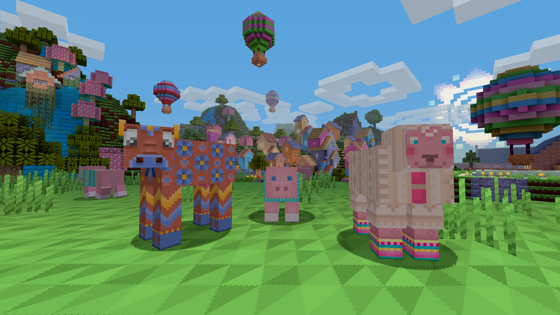 Now available for all Minecraft console editions for $0.99 USD, the “Pattern Texture Pack” allows players to decorate their Minecraft worlds with bright colors, beautiful patterns and knitted animals.