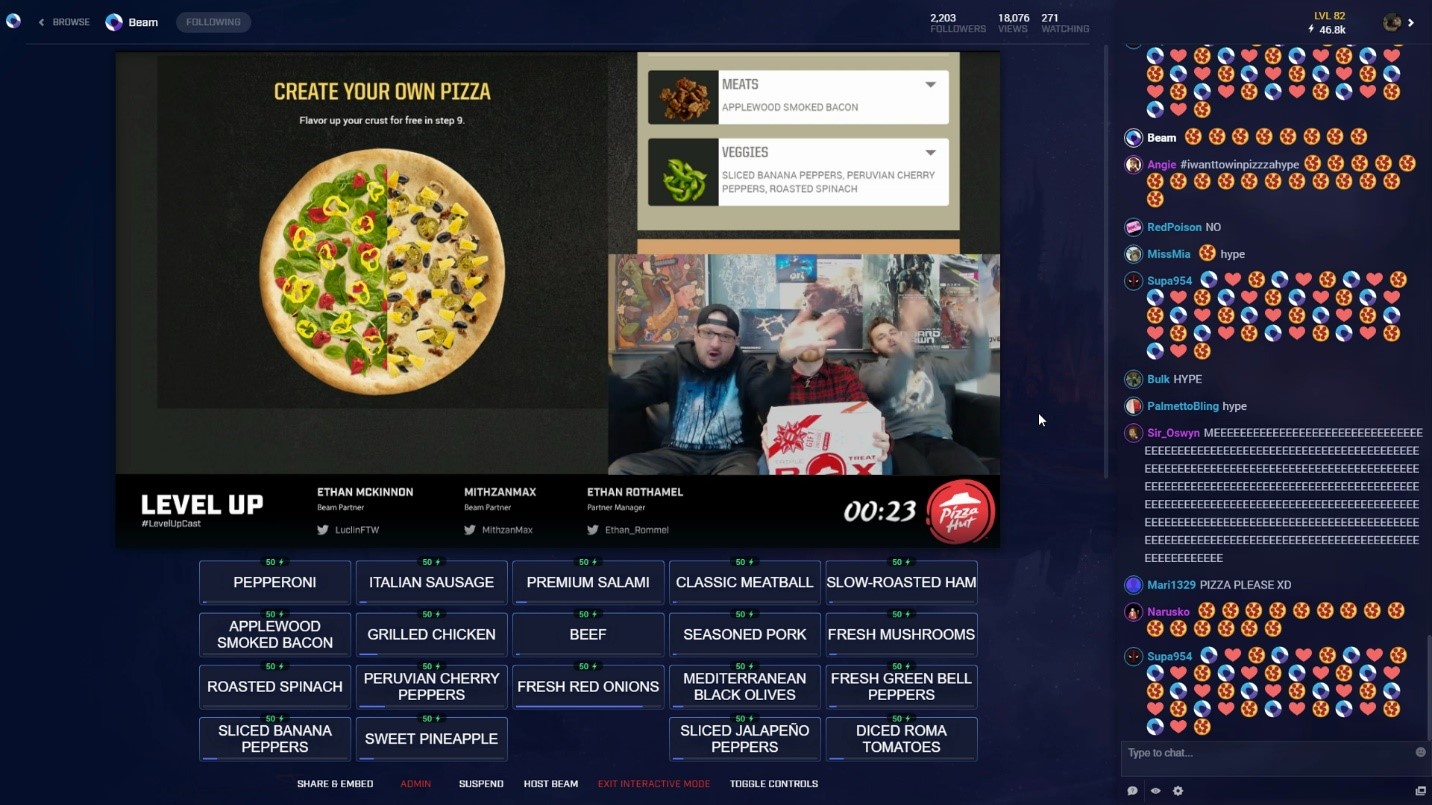 - In one of our #LevelUp casts, the Beam Team’s weekly update on the newest Beam news, we set up interactive buttons that enabled viewers to create and order a pizza for us.