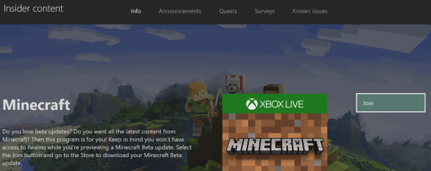 When you select a playtest or preview, it opens a details page where you can Join. After joining, content will appear (if available) in the tabs at the top of the details page. View Announcements, participate in Quests or Surveys, and read about bugs under Known issues.