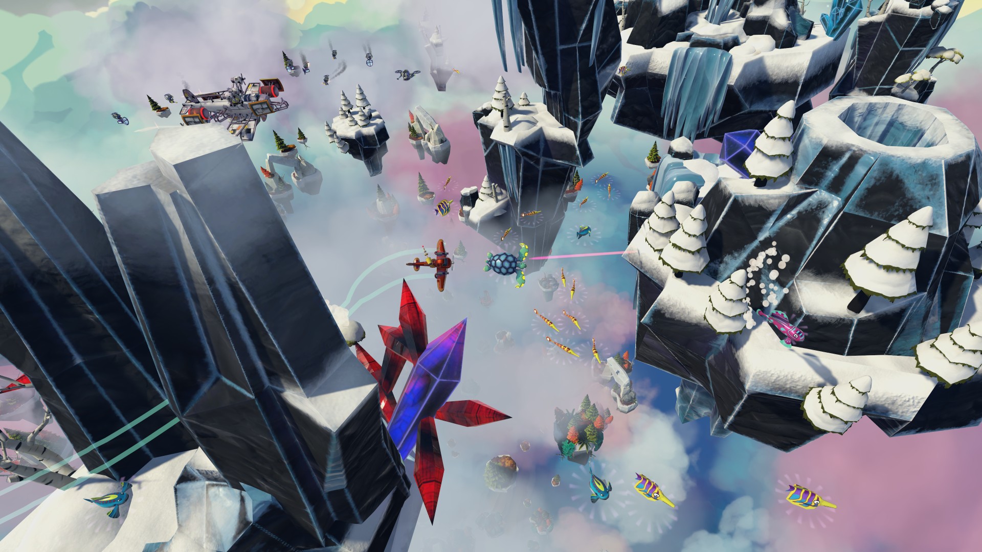 There is a fixed speed to most of the airplanes in Airheart, but there are times when you want to fly a little bit faster - for example when you want to catch the speedy valuable skyfish. Do you see that weapon on top of your airplane? How about using its recoil? Of course, some guns give you a little bit more of it and some none. Personally, I use the machine gun for this all the time.