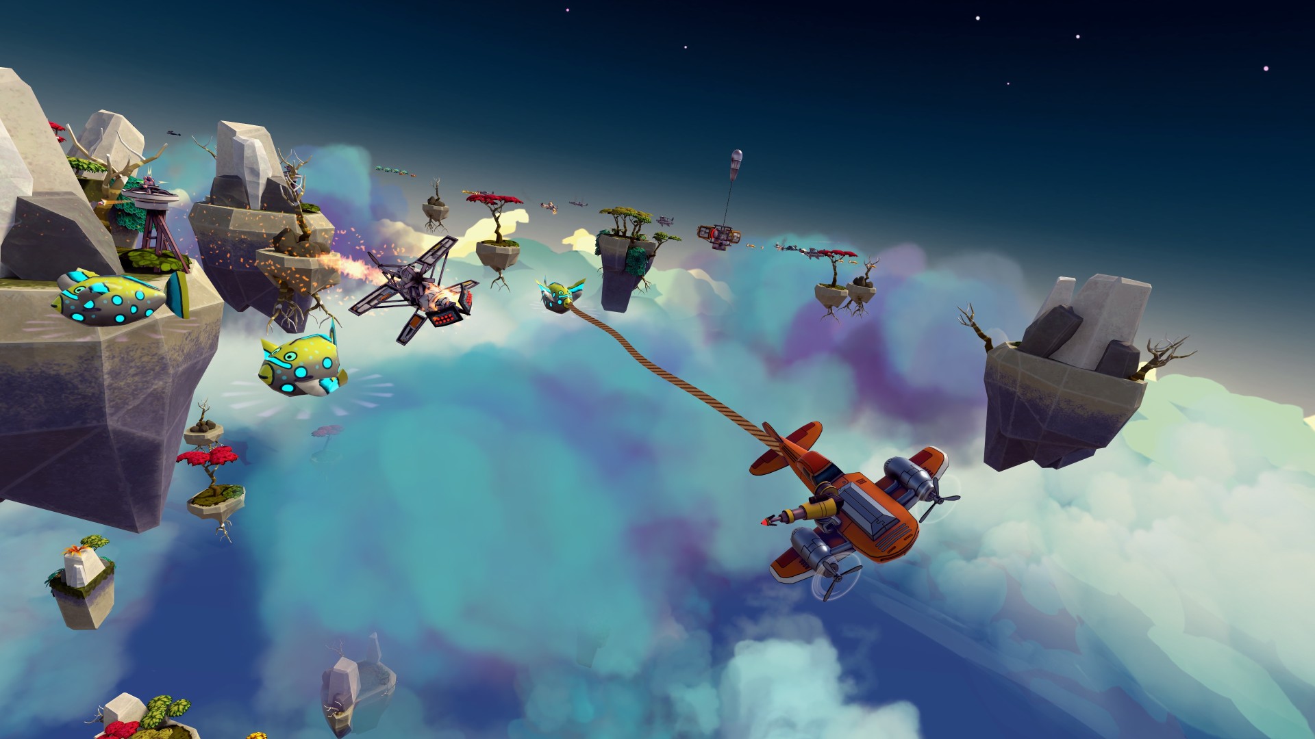 While most of the airplanes in Airheart are always in motion, the harpoon can be used to slow down the momentum. Whenever I need a moment to figure things out or I want to take a clean, precise shot at enemies, I just harpoon a rock and stand still. Be aware that this will also make you an easier target for your enemies!