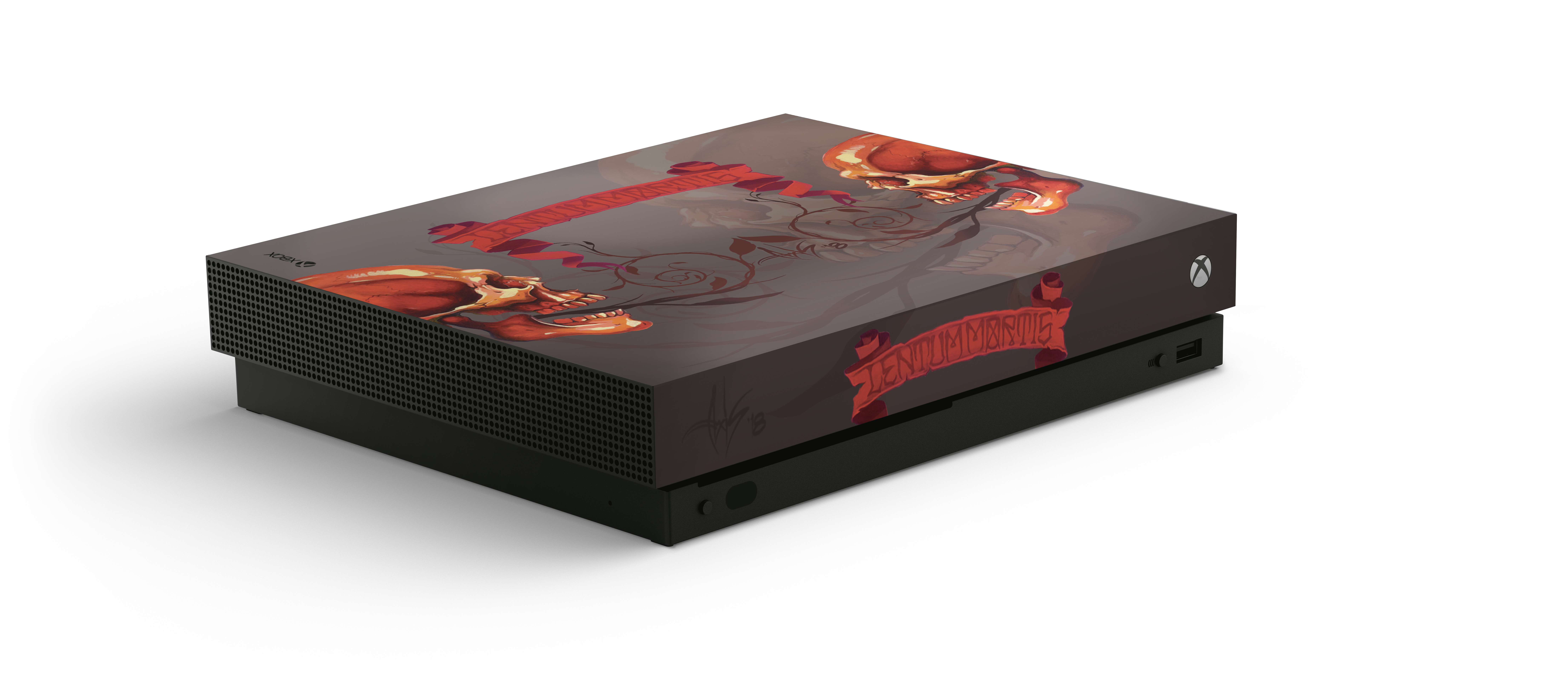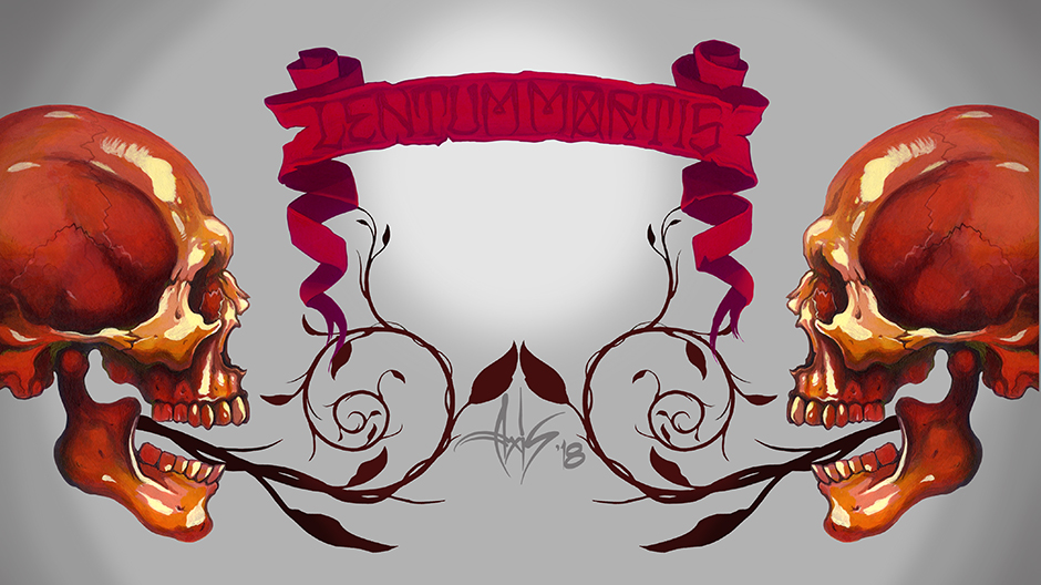 “I was introduced to Day of the Dead, when I was a kid, through one of my teachers. I was already drawing skulls, but when I found out there was a holiday that used them as decorations, I was blown away. My piece celebrates life and death and the banner in my piece is Latin, which loosely translates to "Slow Death".