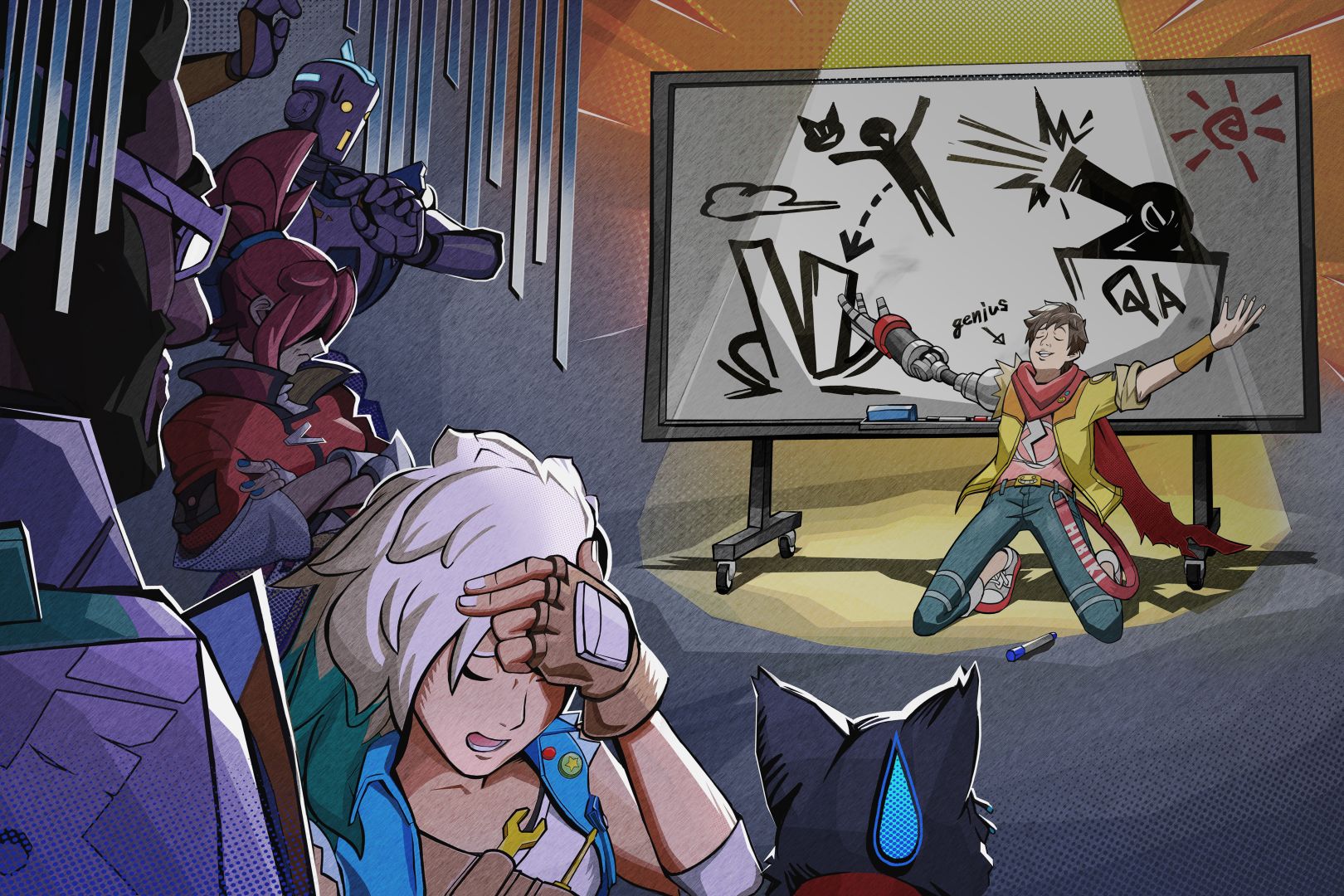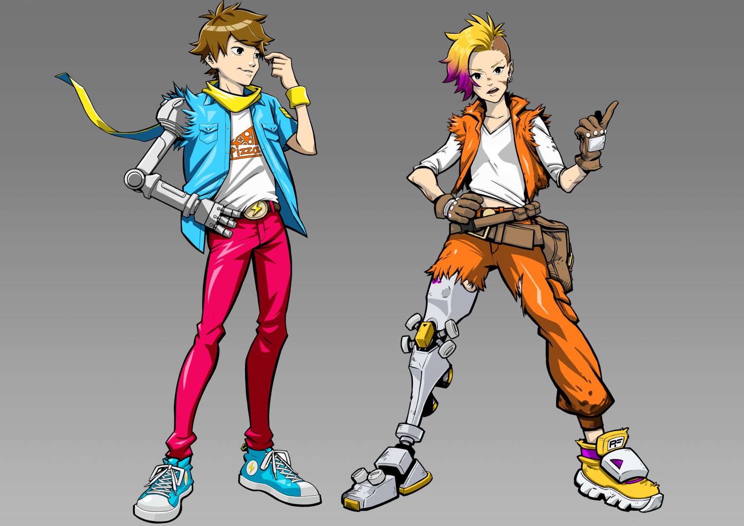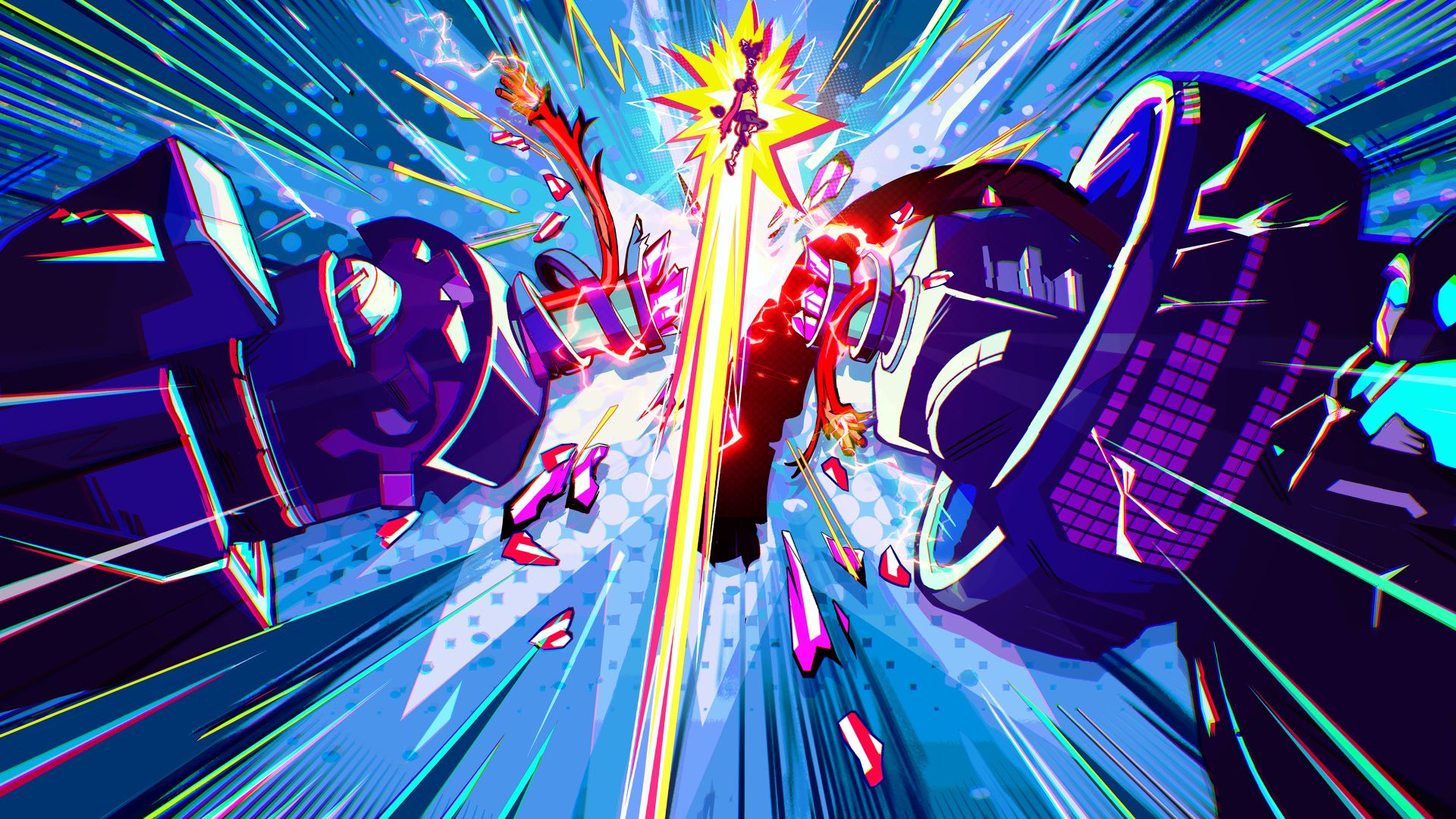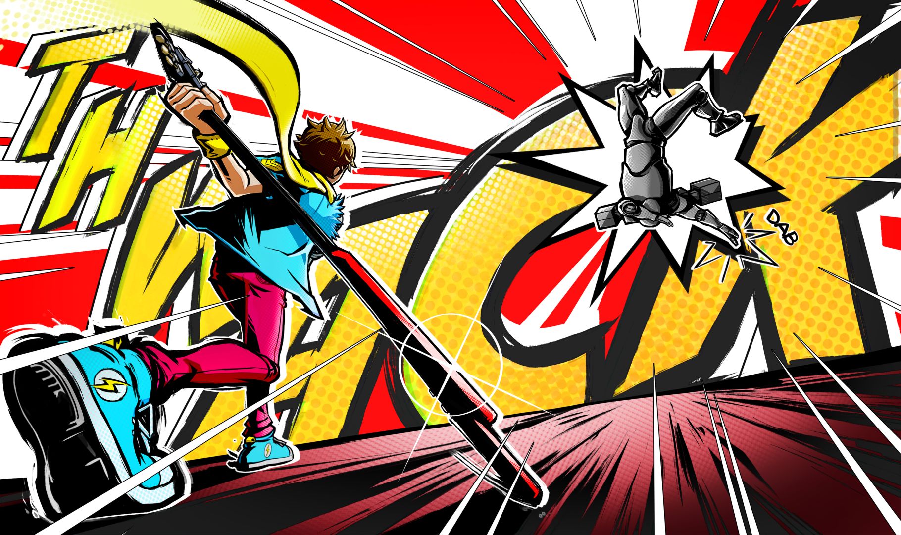 But we didn’t want to repeat what was done, so we didn’t say we wanted to just look like Jet Set Radio. So, what we did was this sort of 2D artwork, like what if a Japanese artist was asked to animate an American comic book but didn’t know anything about American comics — it should feel somewhere in-between that. Like, it doesn’t feel like a Japanese anime, but it doesn’t feel completely like an American made game.
