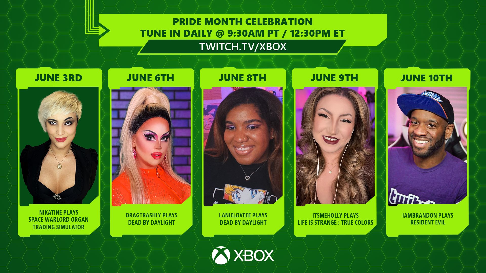 Para celebrar el Mes del Orgullo LGBTQIA+, Xbox Plays dedicará nuestro contenido de transmisión en vivo en junio a las comunidades LGBTQIA+, ¡con streamers/creadores de contenido, desarrolladores y organizaciones sin fines de lucro! ¡Síguenos en nuestro canal de Twitch de Xbox!