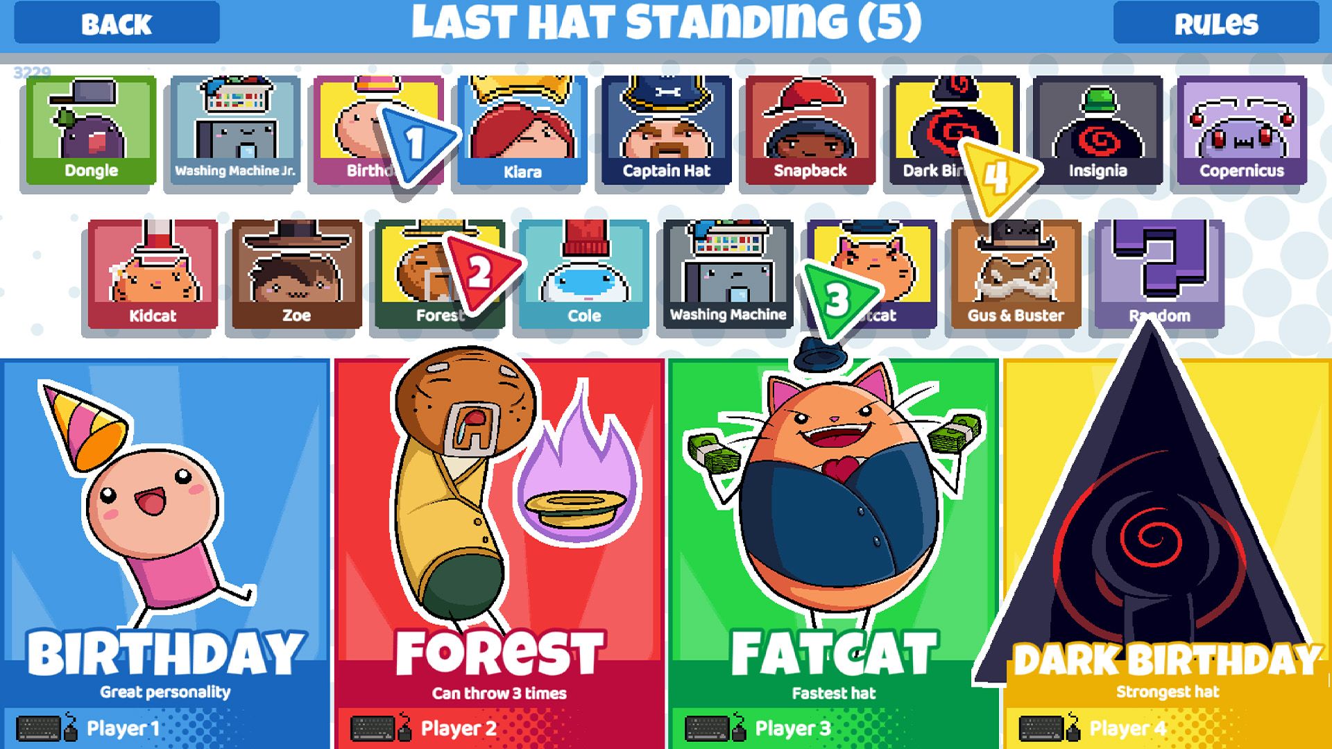 Este es un juego de plataformas en 2D donde pelearás con un sombrero. Lanza tu sombrero para atacar, defender y provocar a los oponentes. Pero, ¡cuidado! Si alguien salta sobre tu sombrero… ¡morirás!