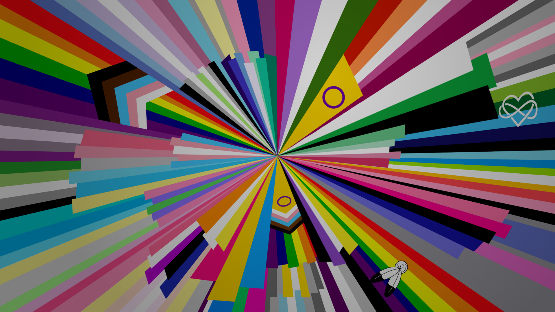 La textura iridiscente es una interpretación del arcoíris clásico, que permite mostrar banderas que terminan juntas en unidad, una expresión de la complejidad que es un regalo de ser parte de la comunidad LGBTQIA+.