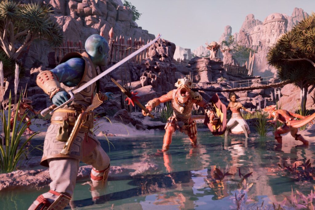 Al hablar con el equipo de Obsidian, me enteré de que todo esto es intencional en su diseño, lo que nos permite ver cómo se vería una nueva frontera si fuera un RPG de fantasía en primera persona. Tomar prestados elementos de nuestro mundo también ayuda a informar las “reglas” que sigue Obsidian para crear una experiencia de jugador dentro de Living Lands, girando los diales lo suficiente para brindarnos algo completamente único, donde las almas son reales y los dioses existen, pero no necesariamente de la manera en que pensamos en ellos.