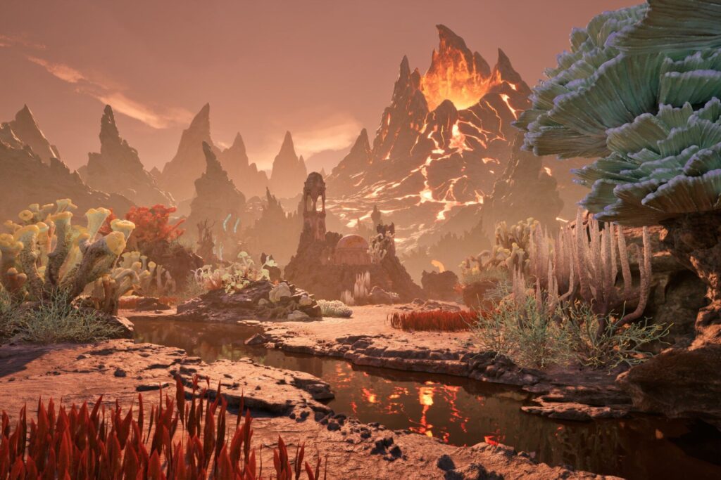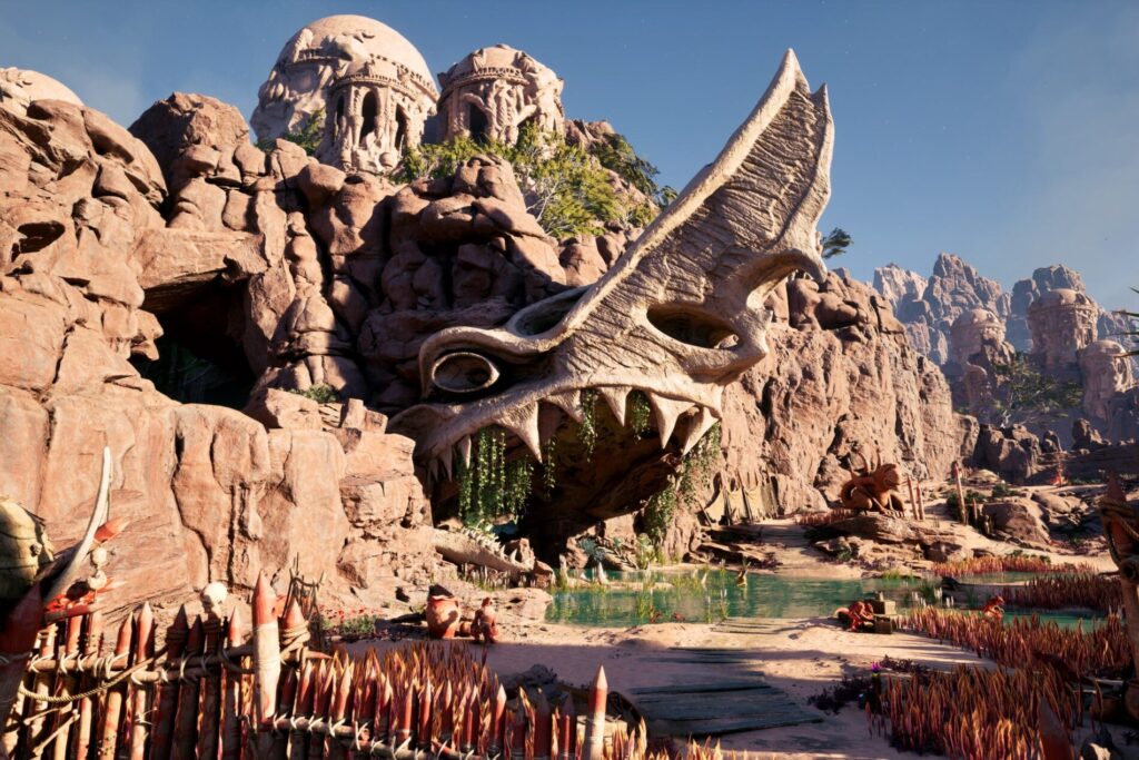 “Parte de lo que hizo que Living Lands fuera un entorno atractivo es la promesa de tener entornos y biomas distintos, lo que te hace sentir como si estuvieras atravesando una tierra grande y salvaje”, explica Patel. “En la tradición de Pillars, Living Lands se describen como una isla extraña donde ves cosas que no ves en ningún otro lugar. Está excavada por montañas y valles, lo que permite que existan biomas y zonas climáticas distintas en proximidad entre sí”.