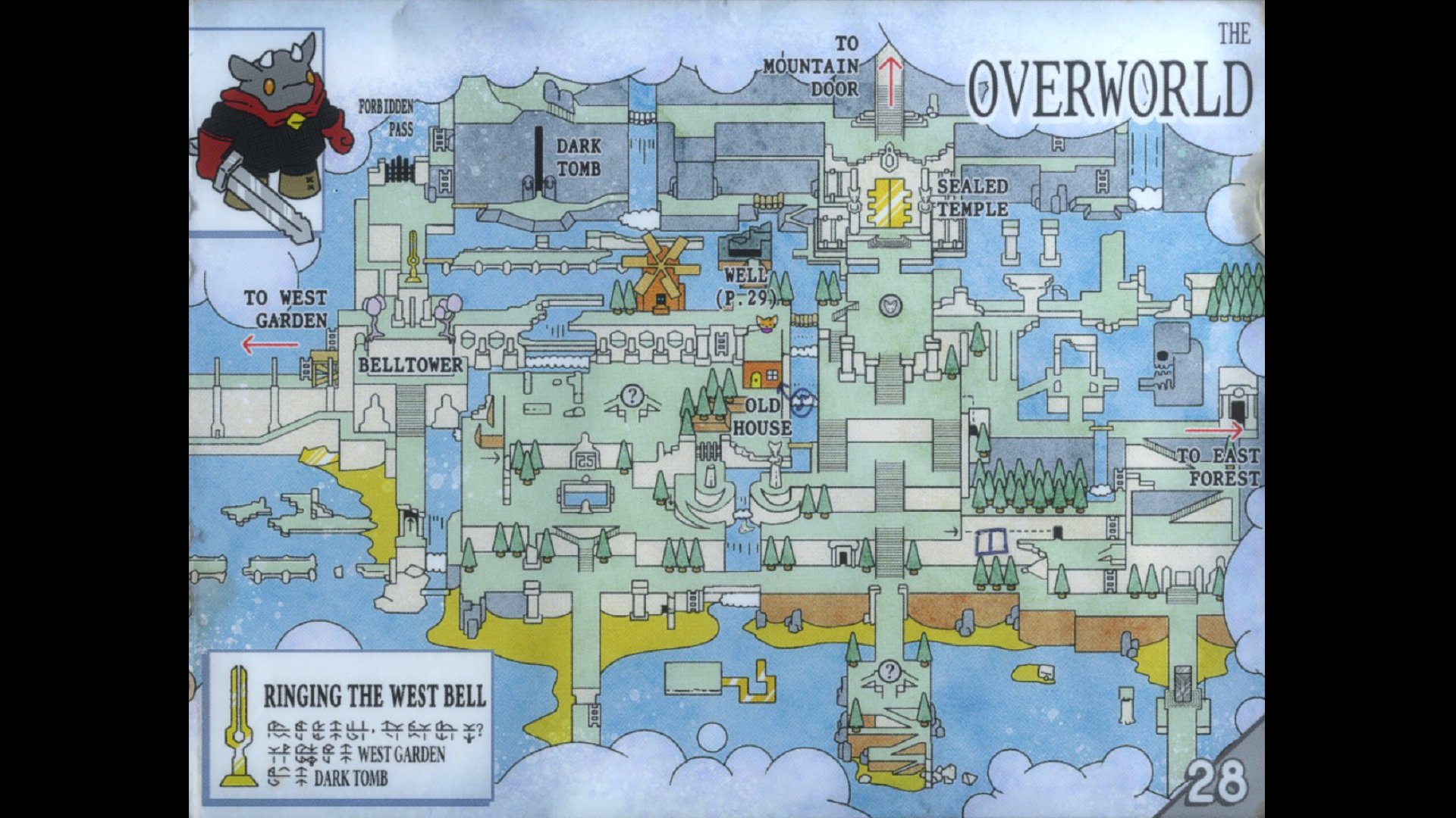 Vous trouverez des pages de ce manuel cachées un peu partout dans le monde de Tunic. Lorsque vous en ramasserez une, elle s'ajoutera au livret pour créer un guide de ce royaume inconnu. Étudiez attentivement ces pages pour vous familiariser avec le terrain et prendre le dessus sur vos adversaires. Le manuel est rempli de magnifiques illustrations à la main et semble être écrit dans un langage étrange. D'ailleurs, en y pensant, ces glyphes apparaissent partout dans le monde. Quelle est leur signification ? Arriverez-vous à les traduire ? Qu'est-ce que Tunic peut nous cacher ?