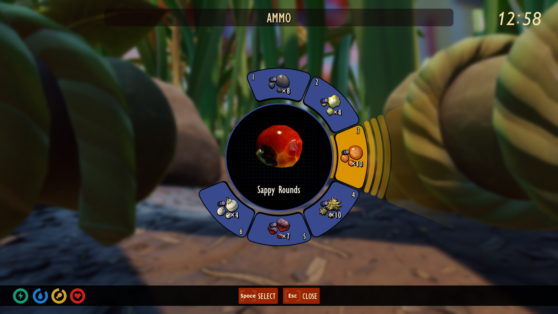Les tourelles ont changé, nous avons combiné les tourelles à galets et à pollen pour créer la tourelle à glands. Elle pourra utiliser différents types de munitions selon les cibles que vous affronterez. À titre d'exemple, les balles rocheuses pourront repousser vos ennemis alors que les balles de sève seront idéales pour les ralentir. Au total, ce sont cinq types de munitions qui vous attendent. Vous pourrez les stocker dans un coffre à proximité d'une tourelle pour pouvoir facilement changer de munitions, sans même quitter votre siège.