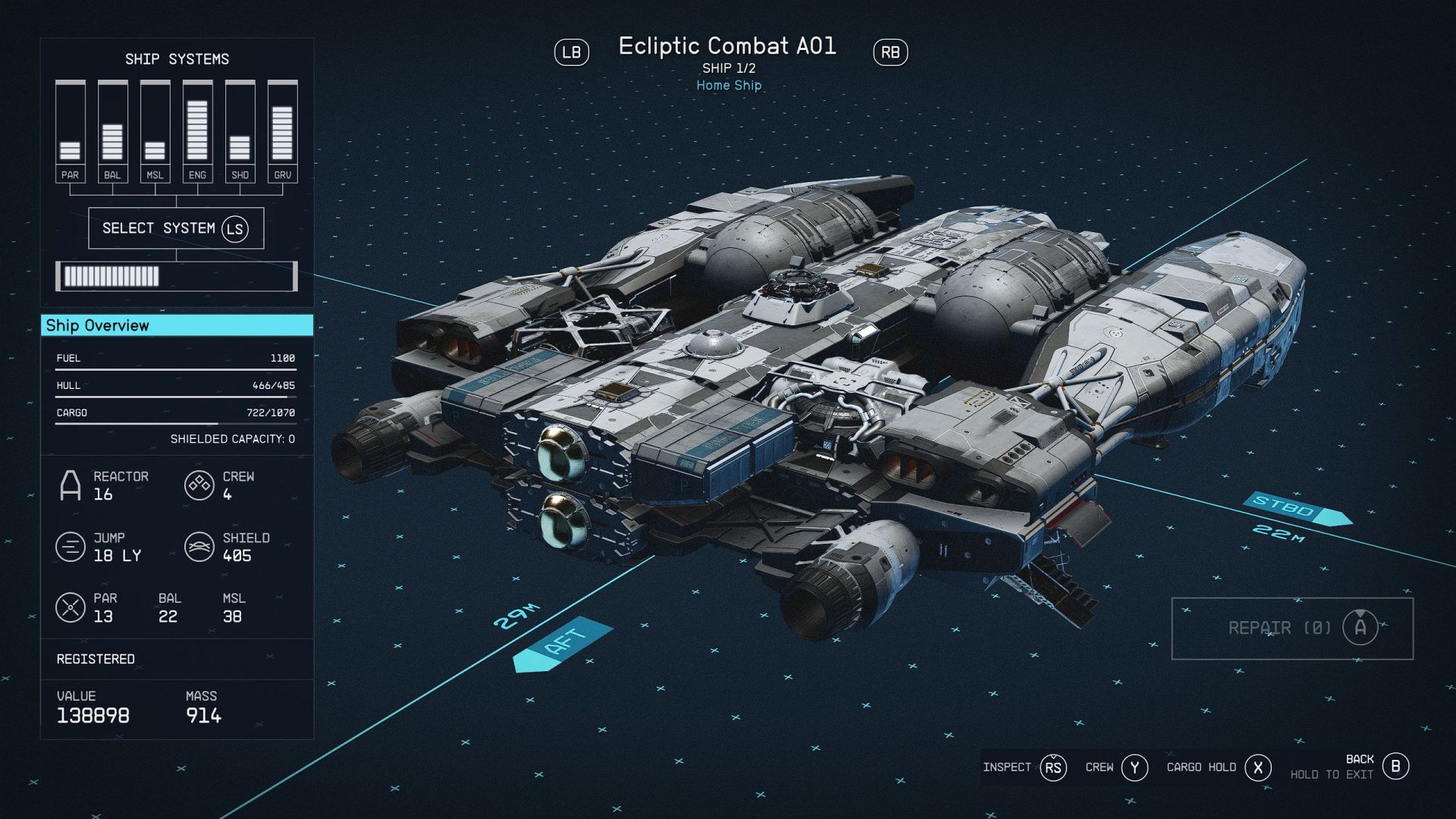 Si vous souhaitez augmenter la capacité d’inventaire de votre vaisseau, vous pouvez également explorer le Ship Builder et ajouter quelques conteneurs de cargaison. Assurez-vous simplement de compenser cela en ajoutant des propulseurs supplémentaires pour ne pas trop affecter la maniabilité de votre vaisseau.