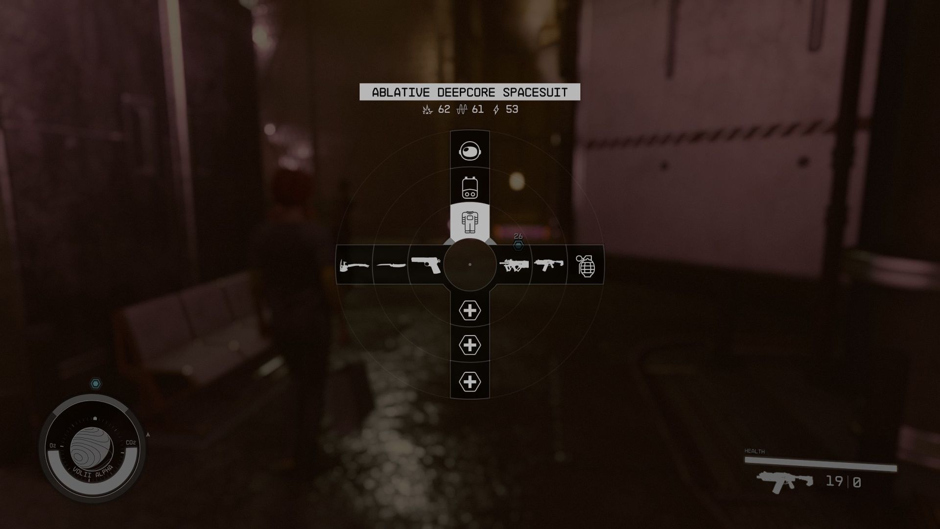 La composition de la barre des favoris peut varier en fonction de ce que vous souhaitez y mettre, et chacun l’abordera à sa manière. Une configuration générale efficace consiste à y assigner une barre d’armes, une barre d’objets à lancer, et une barre d’items de soin. Cela vous laisse trois emplacements supplémentaires que vous pouvez utiliser pour échanger de l’équipement à chaud, ce qui peut s’avérer très utile lorsque vous êtes au cœur d’une fusillade avec des Spacers, par exemple, comme équiper un casque qui réduit les dégâts balistiques de -15%.