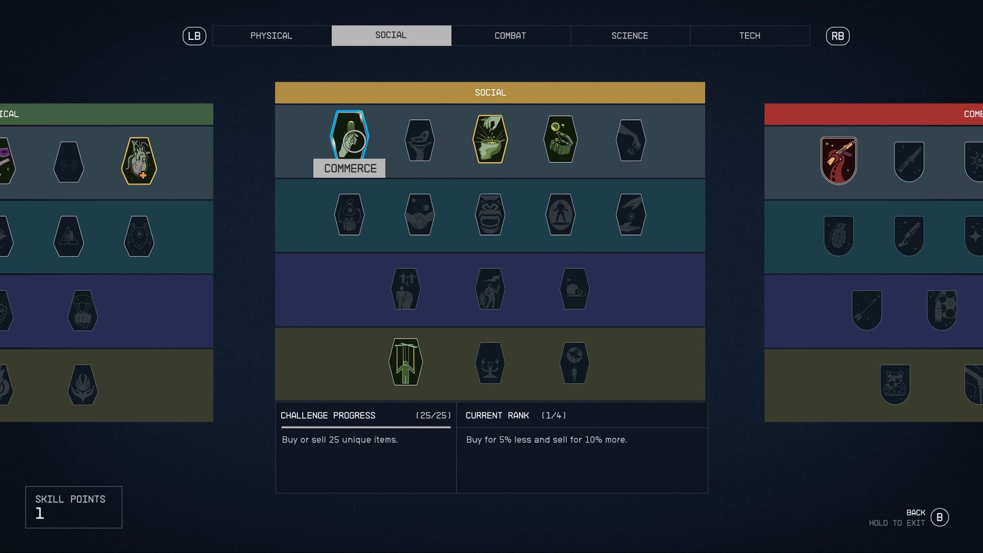 La progression des personnages diffère quelque peu de celle des précédents RPG de Bethesda, tels que Skyrim et Fallout 4. Vous gagnez toujours de l’XP pour vos actions, comme réussir une persuasion, mais pour débloquer réellement les avantages de votre personnage, vous devez vous concentrer sur les défis de compétences. Par exemple, si vous souhaitez jouer un personnage axé sur la Furtivité, vous devez investir dans la compétence Furtivité pour "déverrouiller" la barre de compétence de la Furtivité de votre personnage. Si vous voulez ensuite améliorer votre compétence en Furtivité, vous devrez relever des défis spécifiques pour débloquer les niveaux suivants. Cela s’applique à de nombreuses compétences. Vous verrez également celles qui sont prêtes à être améliorées dans l’interface utilisateur, car elles clignoteront pour vous dans le menu du jeu.