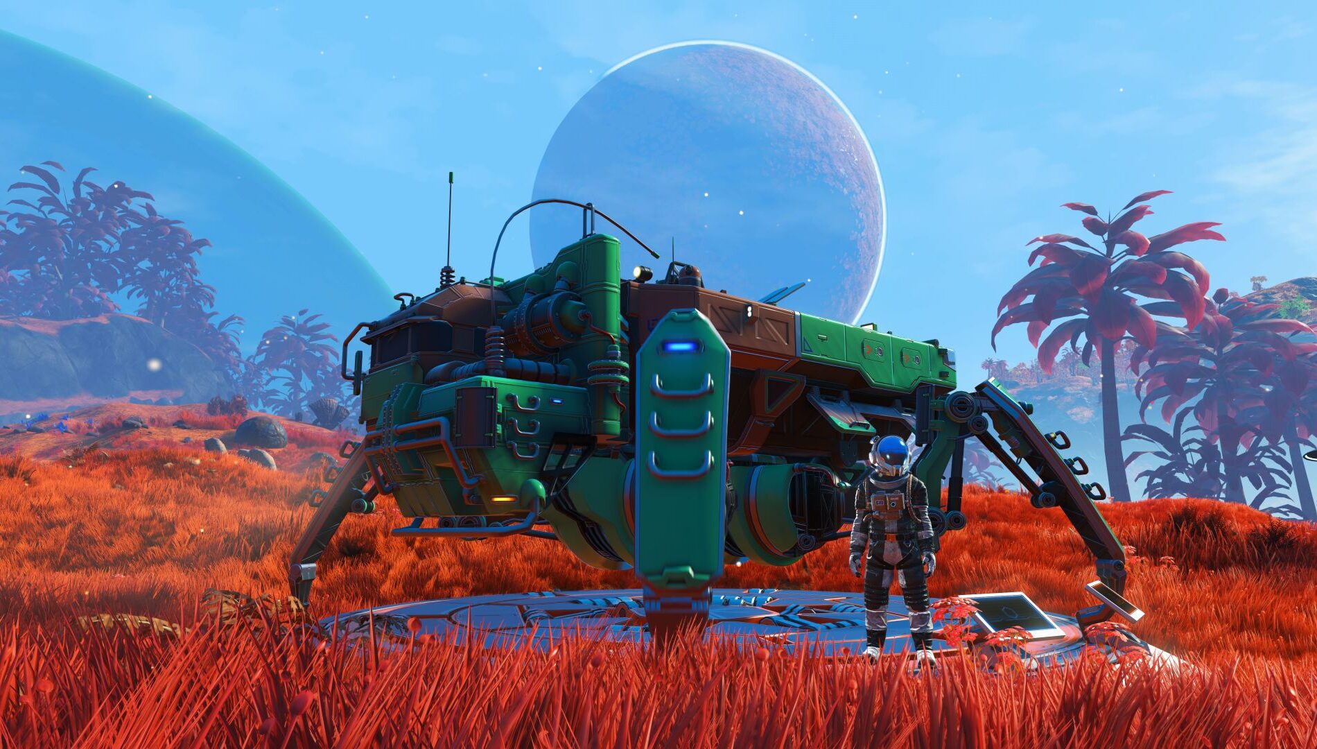 Bien sûr, même un véhicule aussi robuste et imposant que l’exocraft Colossus doit être adapté pour transporter une cargaison aussi lourde et potentiellement dangereuse. Il peut désormais être équipé d’un module de chargement arrière basculant pour faciliter les opérations, ainsi que de toute une gamme de systèmes de locomotion, des chenilles aux pattes mécaniques, afin d’explorer les planètes avec style, cargaison solidement arrimée. Veillez simplement à ne pas trop secouer les matériaux instables au moment de choisir votre itinéraire.