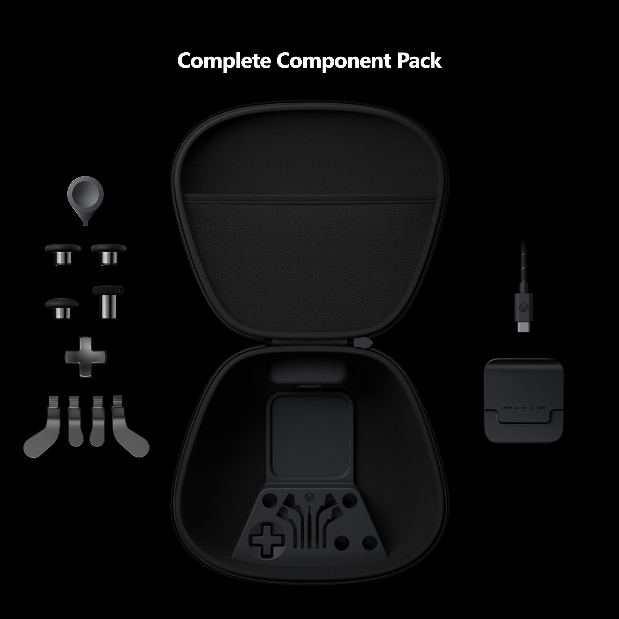 Xbox Elite シリーズ 2 のコントローラーの最大の魅力は、カスタマイズ性の高さであり、プレイヤーは自分に合ったベストなコントローラーのセットアップを選ぶことができます。別売のコンプリート コンポーネント パック (参考価格 7,128 円、税込) を購入すれば、Xbox Elite シリーズ 2 Core バージョンに、さらにカスタマイズを加えることも可能です。サムスティック、パドル、方向パッドを交換し、お好みのスタイルに合わせてコントローラーをカスタマイズしてください。キャリング ケース、充電ドック、USB-C ケーブルも付属しています。さらに、Xbox Design Lab で Xbox Elite シリーズ 2を自分好みのデザインにカスタマイズすることも可能です。
