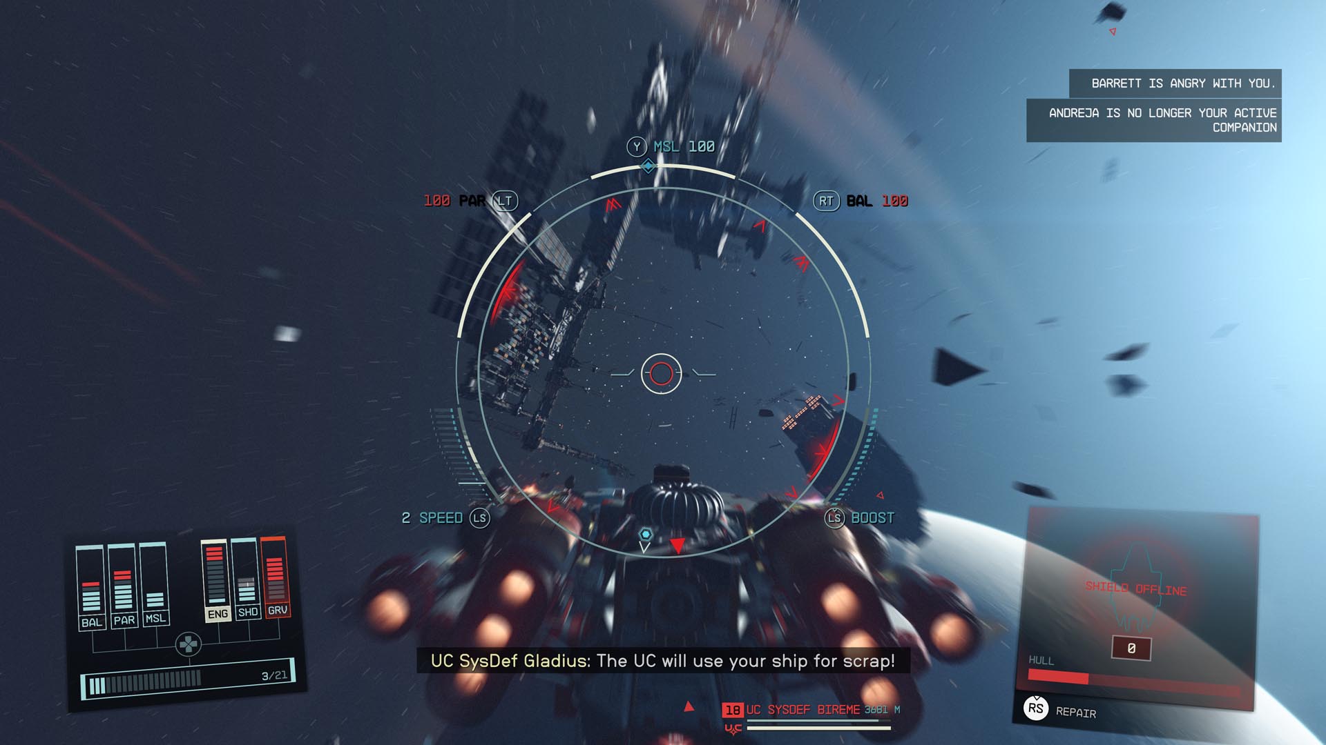 つまり何が言いたいのかと言うと、単に船を操縦するだけでなく、船を使っていかに戦うかを知る必要がある、ということです。宇宙での戦闘は地上での戦闘とはまったく異なるものとなっており、惑星と惑星の間に広がる宇宙空間で生き残るためには、数多くのメカニクスを理解しなければなりません。というわけで今回は、『Starfield』の宇宙戦闘で勝利するためのガイドです。
