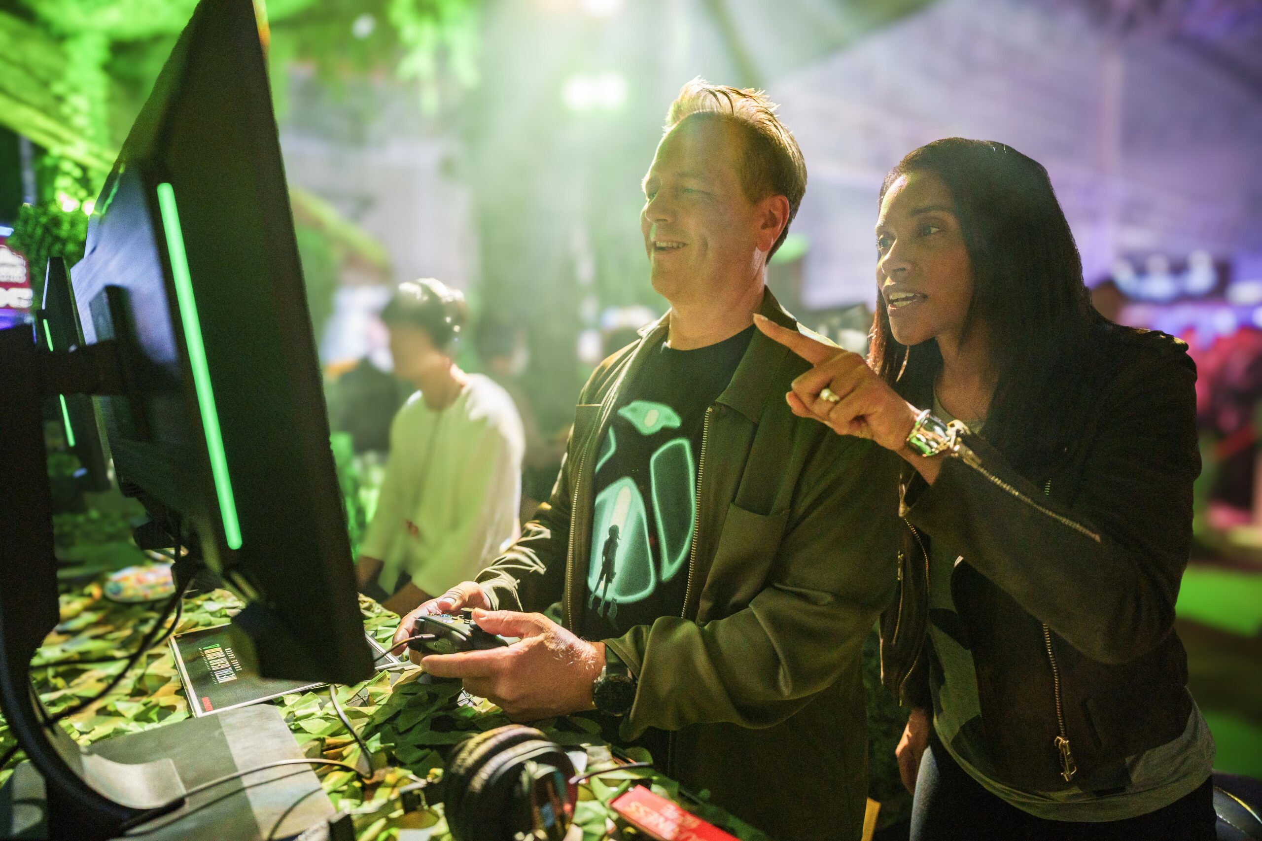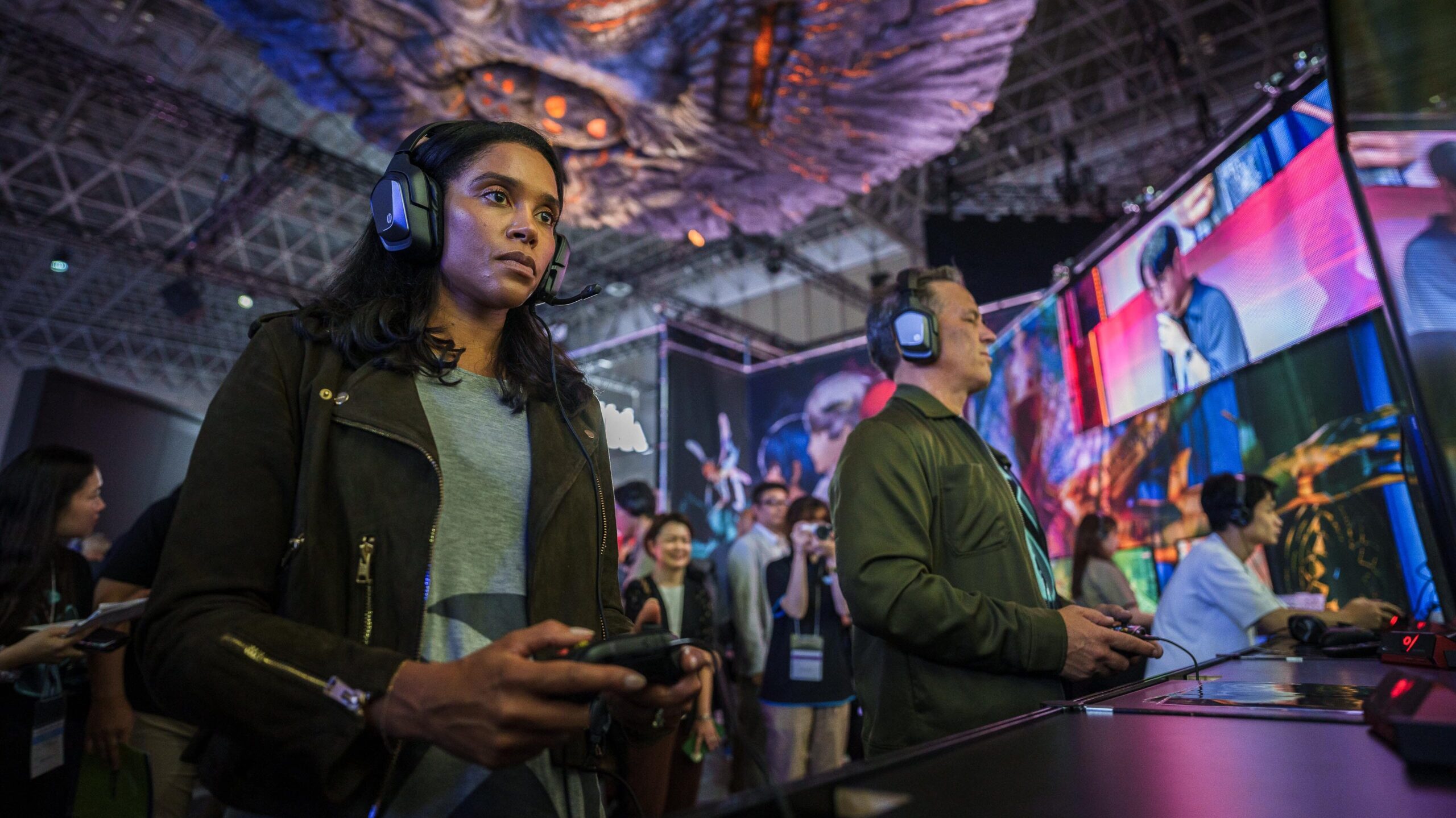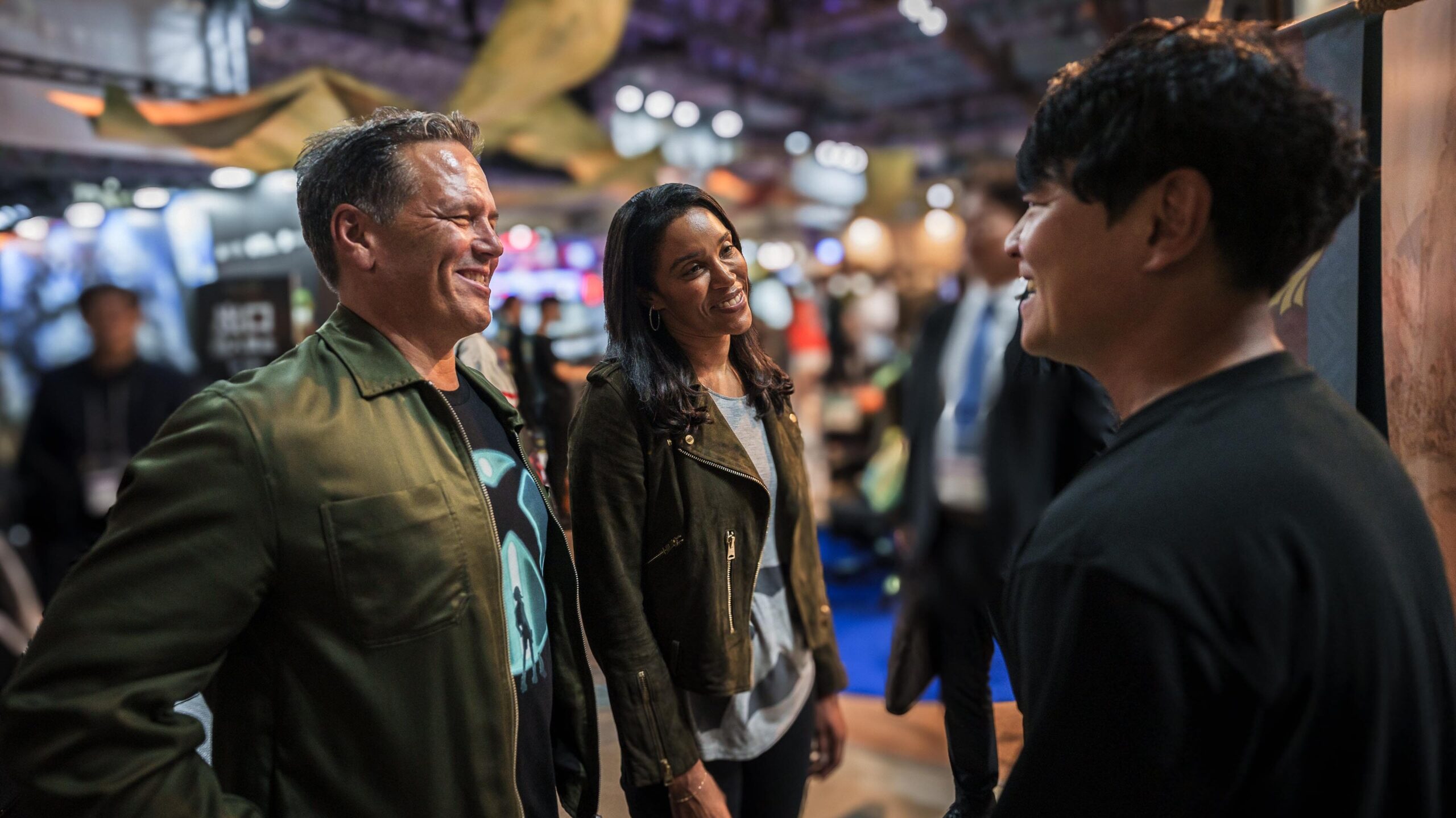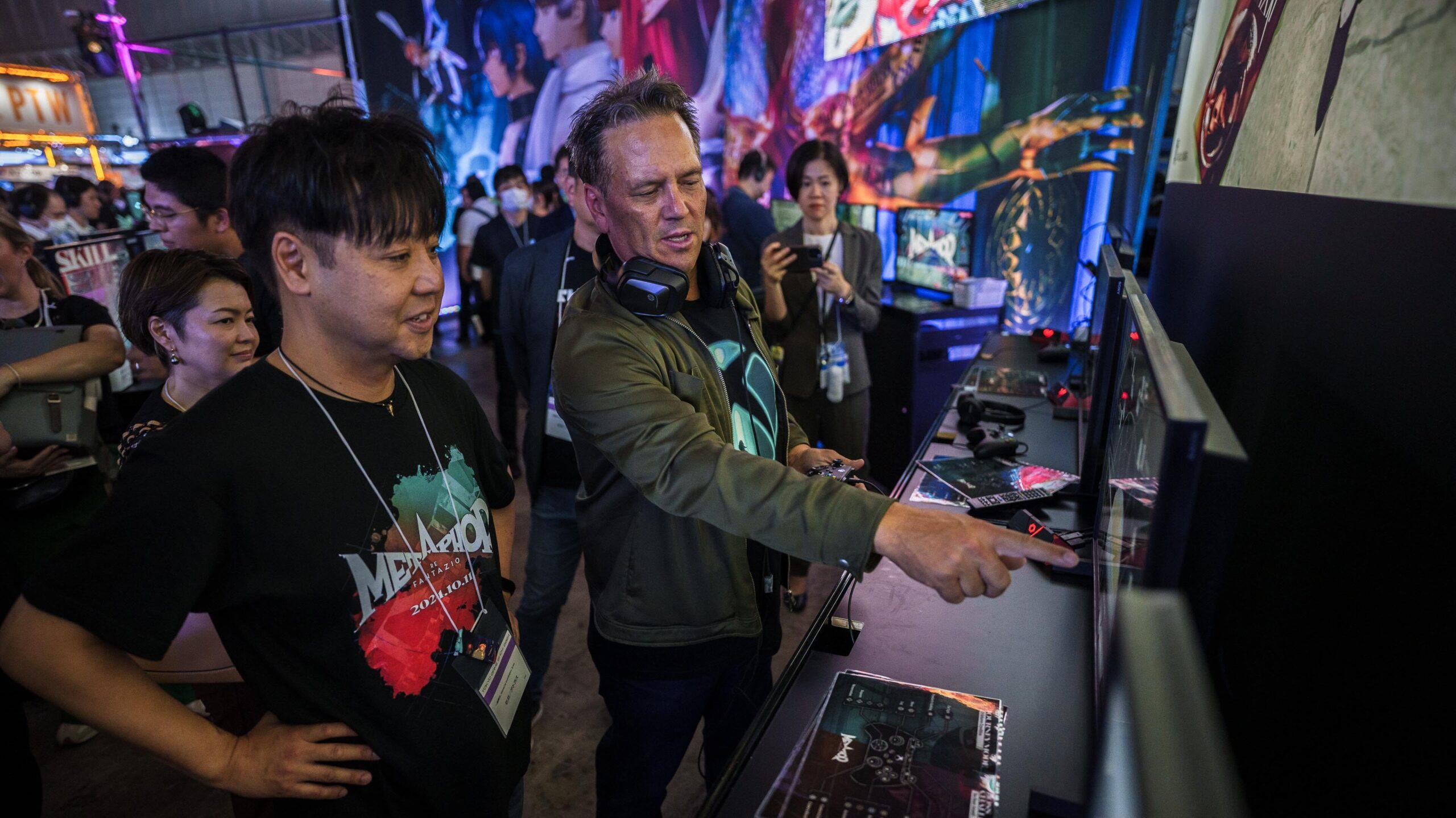 東京ゲームショウ 2024 の 2 日目となる 9 月 27 日、雨がしたたる中 Xbox のフィル スペンサーとサラ ボンドの両名は、幕張メッセに点在する多くのパートナー ブースへと足を運び、各社の最新タイトルがひしめく空間で濃密な時間を過ごしました。ゲームの中で描かれる世界を模したさまざまなブースの様子を楽しみながら、時には実際にコントローラーを手に取り、それぞれのゲームの世界へと果敢に飛び込んで行った二人の一日を Xbox Wire Japan 編集部がお届けします。