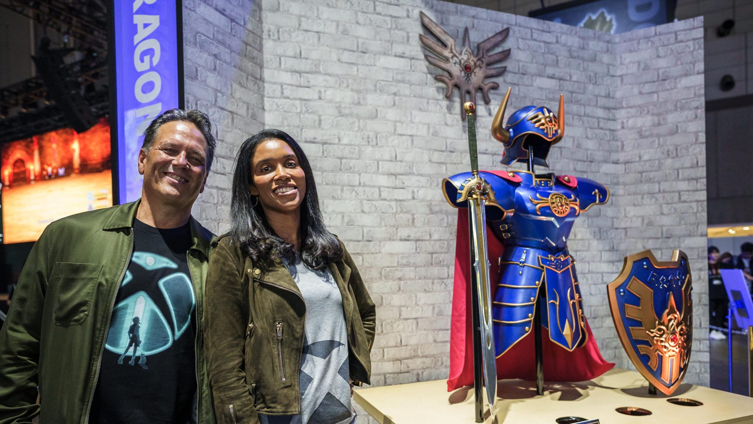 続いて、二人は 11 月 14 日より Xbox Series X|S、Windows PC (Microsoft Store、そして Steam 向けに順次発売する HD-2D 版『ドラゴンクエストIII そして伝説へ…』コーナーへ。勇者ロトが身に着けていた伝説の装備も発見しました。フィルもサラもその荘厳なたたずまいを十分に堪能してから、次なる目的地への移動が始まりました。
