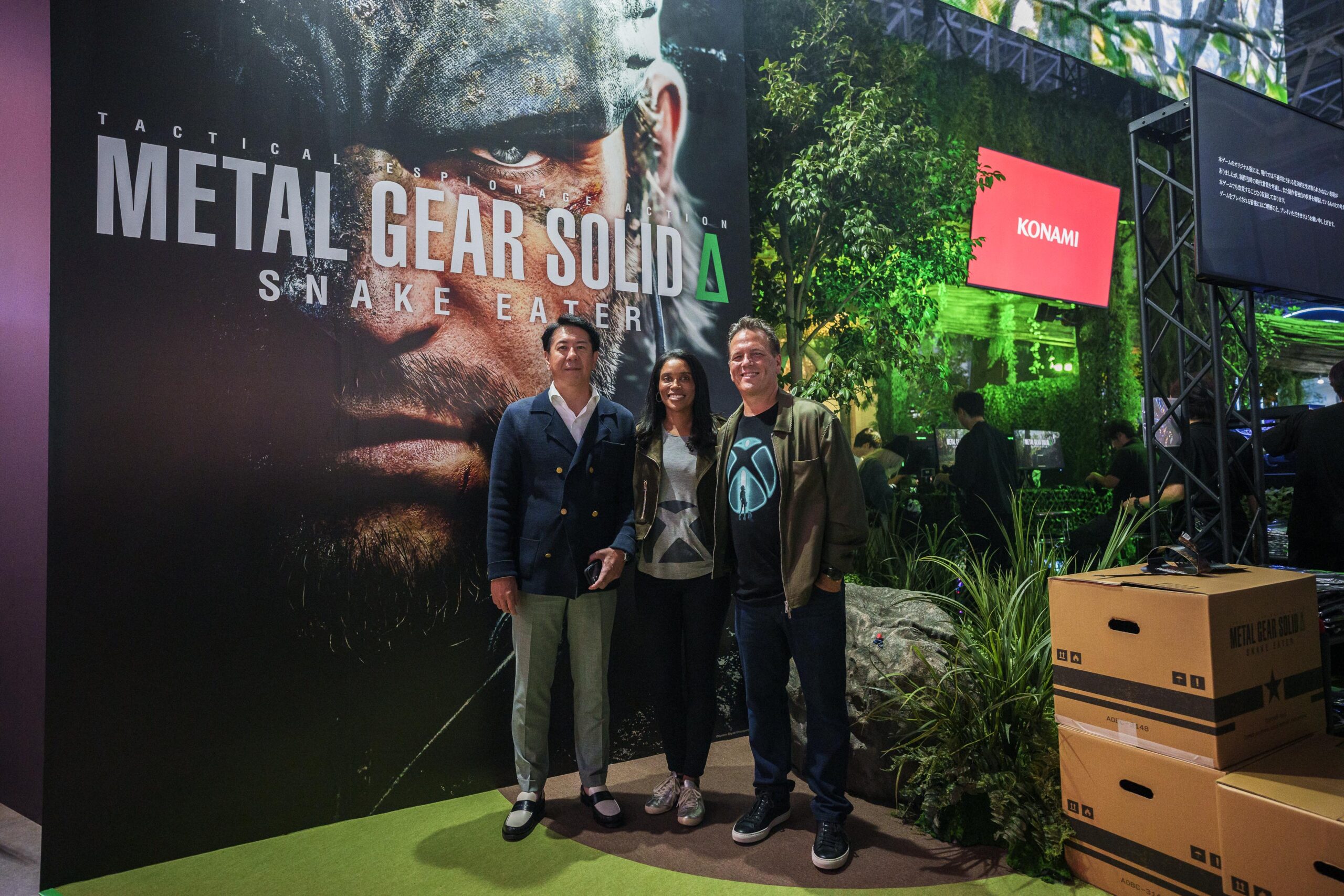 続いて向かったのは、ジャングルさながらの空間を演出した『METAL GEAR SOLID Δ: SNAKE EATER』(Xbox Series X|S、Steam 向けに発売) エリアを擁するコナミブース。