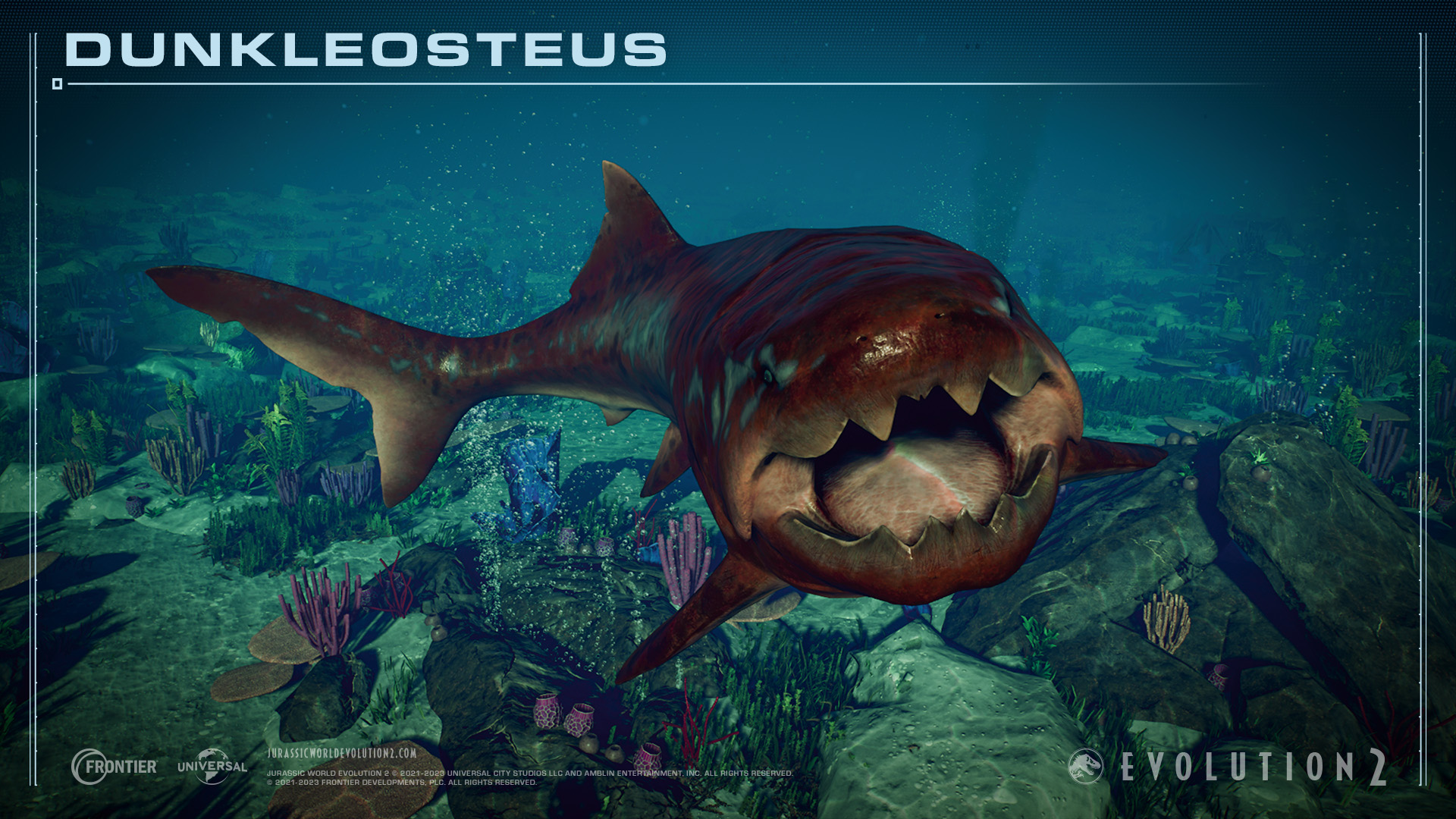Nenhum pacote de espécies estaria completo sem um predador voraz! O Dunkleosteus é um peixe blindado e poderoso, sendo o primeiro em Jurassic World Evolution 2 a apresentar uma mandíbula grande e afiada.