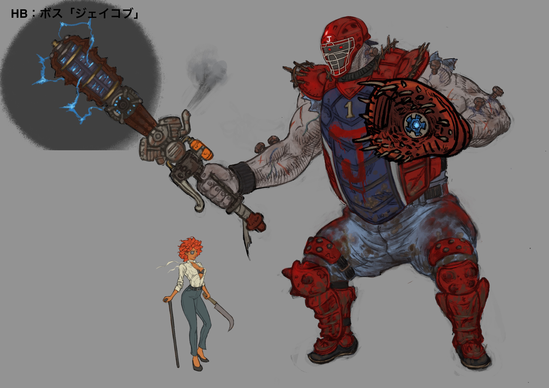Swery: Os itens de combate corpo a corpo, como uma faca cirúrgica grande, são a sua arma principal, e os itens de combate à distância, como uma espingarda ou coquetel Molotov, são a sua arma secundária. Você partirá em missões equipado com cada um desses tipos de arma. As armas são basicamente obtidas de baús do tesouro que caem durante as missões. Há, é claro, diferenças na aparência e no desempenho.