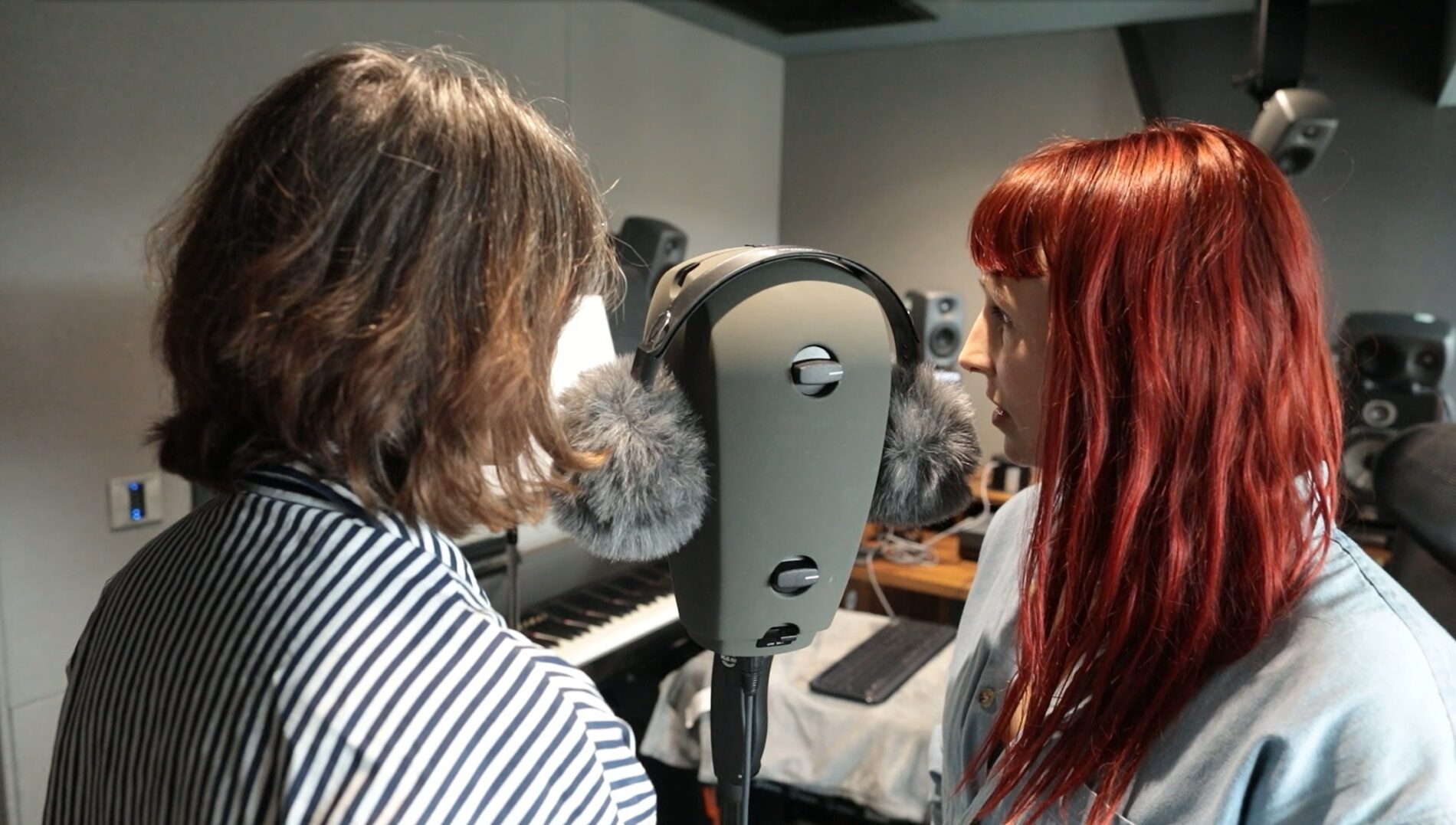 Enquanto estou no estúdio, me mostram um trecho das Fúrias em ação. As intérpretes Abbi Greenland e Helen Goalan participam de uma performance não roteirizada retratando Senua se movendo por uma caverna. Através dos fones de ouvido, ouço uma narração assustadora dos arredores, seus pensamentos fluindo perfeitamente em um estado de fluxo. Mas o que vejo são as duas atrizes circulando ambos os lados do microfone em forma de cabeça da Neumann, sentado entre elas como abutres bicando uma carcaça – permitindo que suas vozes pareçam estar se movendo pela sua cabeça, como fariam para Senua.