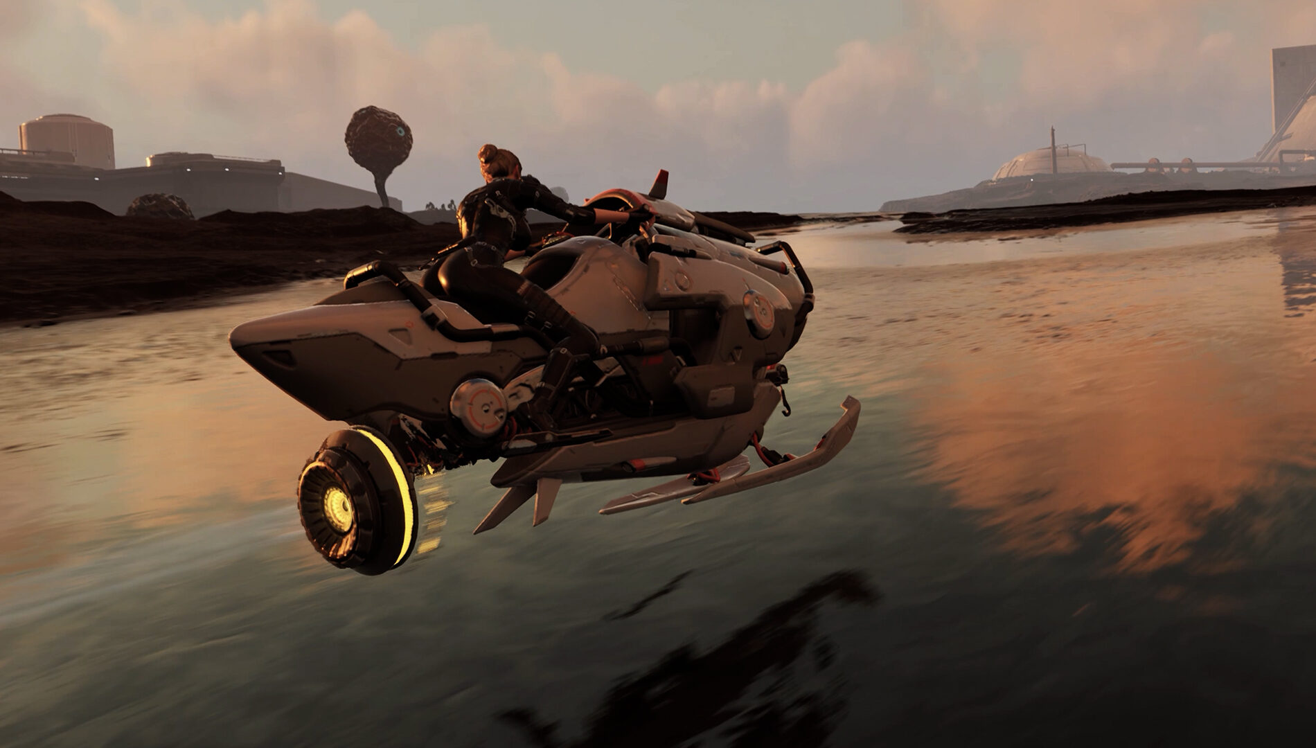O Hover Bike foi criado para ajudar os jogadores a viajar rapidamente e com facilidade por Axion Fields, tornando a exploração mais rápida e divertida. Nós nos concentramos em fazer com que a experiência de pilotagem fosse natural, permitindo que você suba e desça do veículo em movimento e até mesmo faça transições suaves com ações como usar o gancho.